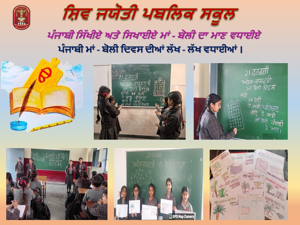 पंजाबी विभाग के शिक्षकों ने मातृभाषा के महत्त्व के बारे में जानकारी देते हुए बताया कि व्यक्तित्व निर्माण में हमारी मातृभाषा का सबसे बड़ा योगदान होता है, अतः हमें सदैव अपनी मातृभाषा के सम्मान के प्रति सजग रहना चाहिए। इसके अतिरिक्त पंजाबी मातृभाषा को समर्पित कविता-गायन गतिविधि भी आयोजित की गई जिसमें पाँचवी से आठवीं कक्षा के विद्यार्थियों ने कविता-गायन के माध्यम से पंजाबी भाषा के महत्त्व पर प्रकाश डाला। उन्होंने पंजाबी बोलने, लिखने और अपनी विरासत को सँभालने के लिए जागरूक होने का संदेश दिया। विद्यार्थी अपनी मातृभाषा को प्राथमिकता देने के लिए वचनबद्ध भी हुए।