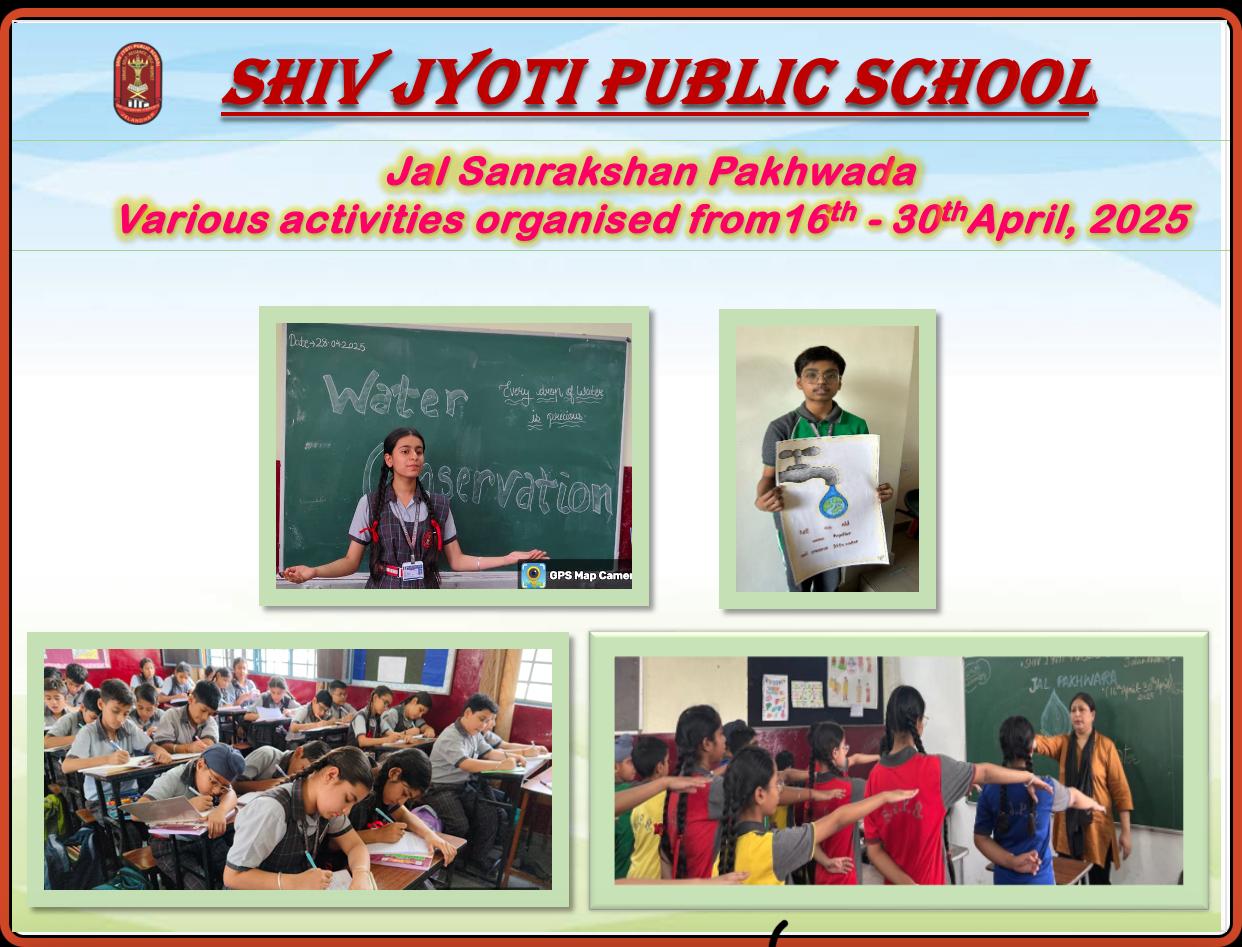 विद्यार्थियों को जागरूक करते हुए बताया कि किस तरह आवश्यकता अनुसार ही जल का उपयोग करना चाहिए। नौवीं से बारहवीं कक्षा के विद्यार्थियों ने जल के महत्त्व पर प्रेरणादायक भाषण-प्रस्तुतियाँ दीं। विद्यार्थियों ने जल जैसी अमूल्य प्राकृतिक संपदा को भावी पीढ़ी के लिए संरक्षित करने के लिए अपने परिवार, मित्रों और समाज को भी प्रेरित करने की प्रतिज्ञा ली। ‘सेव वाटर, सेव लाइफ़’ विषयानुसार विद्यार्थियों ने सुंदर चार्ट बनाने की गतिविधि में अपनी कला के माध्यम से साथियों को जल के महत्त्व के बारे में जागरूक किया तथा इसके का संरक्षण के बारे में जानकारी दी।