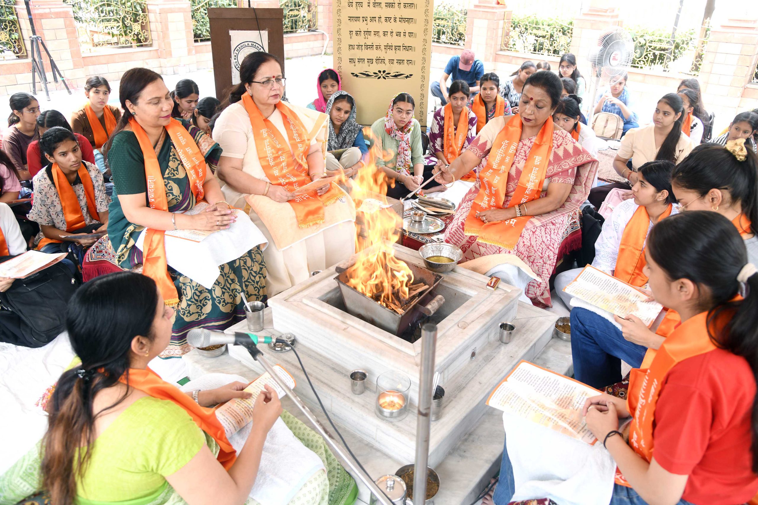 इस उपलक्ष्य में कॉलेजिएट सीनियर सेकेंडरी स्कूल के अध्यापकगण एवं छात्राओं द्वारा हवन यज्ञ में आहूतियां डालकर समग्रत: सर्वमंगल की कामना करते हुए हवन यज्ञ की समाप्ति डॉ. मीनू तलवाड़ द्वारा सृष्टि के कल्याण हेतु शांति पाठ से की गई। हवन के बाद आर्टस, साइंस व कामर्स की छात्राओं के लिए ओरिएंटेशन प्रोग्राम का आयोजन किया गया। जिसमें +1 की छात्राओं को कक्षाओं का शैड्यूल समय-सारिणी, कालेज में अनुशासन बनाए रखने के विषय में एवं कालेज प्रांगण के नियमों एवं उनके सत्र में होने वाली परीक्षाओं की महत्वपूर्ण जानकारी दी गई। मंच संचालन सुकृति द्वारा किया गया।