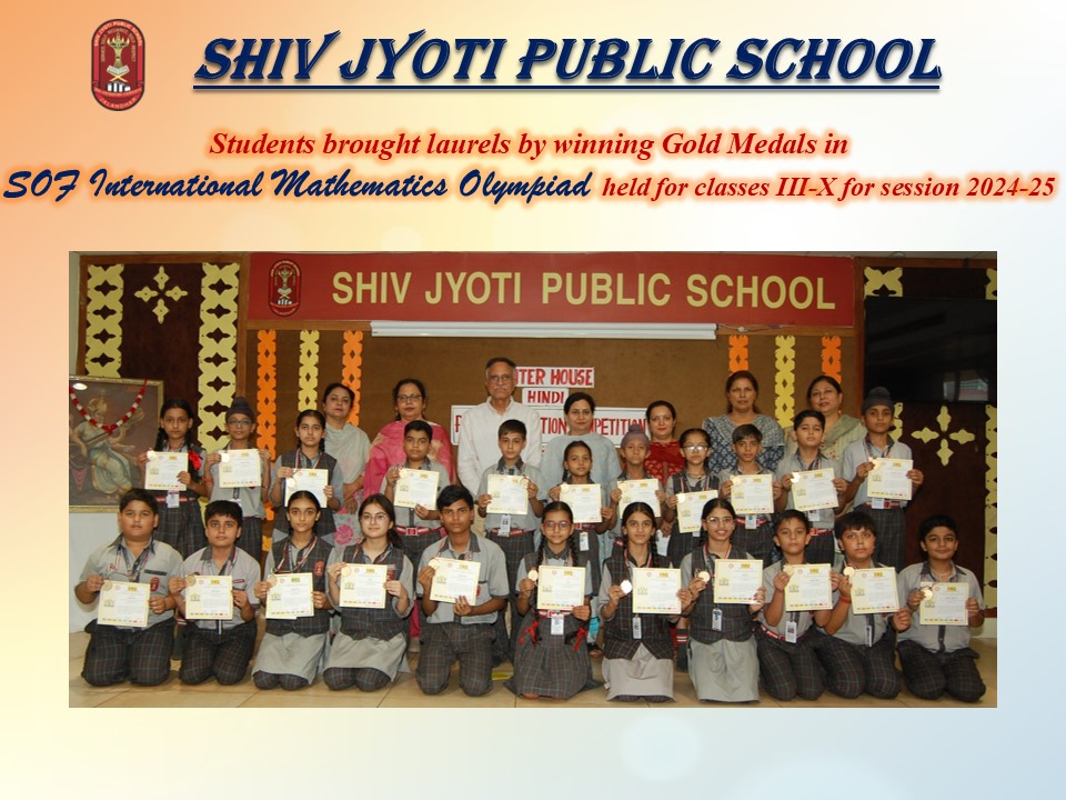 ‘SOF’ द्वारा घोषित परिणाम में विद्यालय के 23 प्रतिभागियों को स्वर्ण पदक एवं प्रमाणपत्र देकर उनका उत्साहवर्धन किया गया। इस अवसर पर प्रधानाचार्या ने विद्यार्थियों तथा मार्गदर्शक अध्यापकों को उनके शानदार प्रदर्शन की बधाई दी। डॉ. विदुर ज्योति, चेयरमैन ट्रस्ट, डॉ. सुविक्रम ज्योति, चेयरमैन कम मैनेजर, मैनेजिंग कमेटी; जनरल सैक्रेटरी ट्रस्ट, उपप्रधानाचार्या रमनदीप तथा सहायक उपप्रधानाचार्या ममता अरोड़ा ने भी विद्यार्थियों तथा मार्गदर्शक अध्यापकों के प्रयासों की सराहना की।
