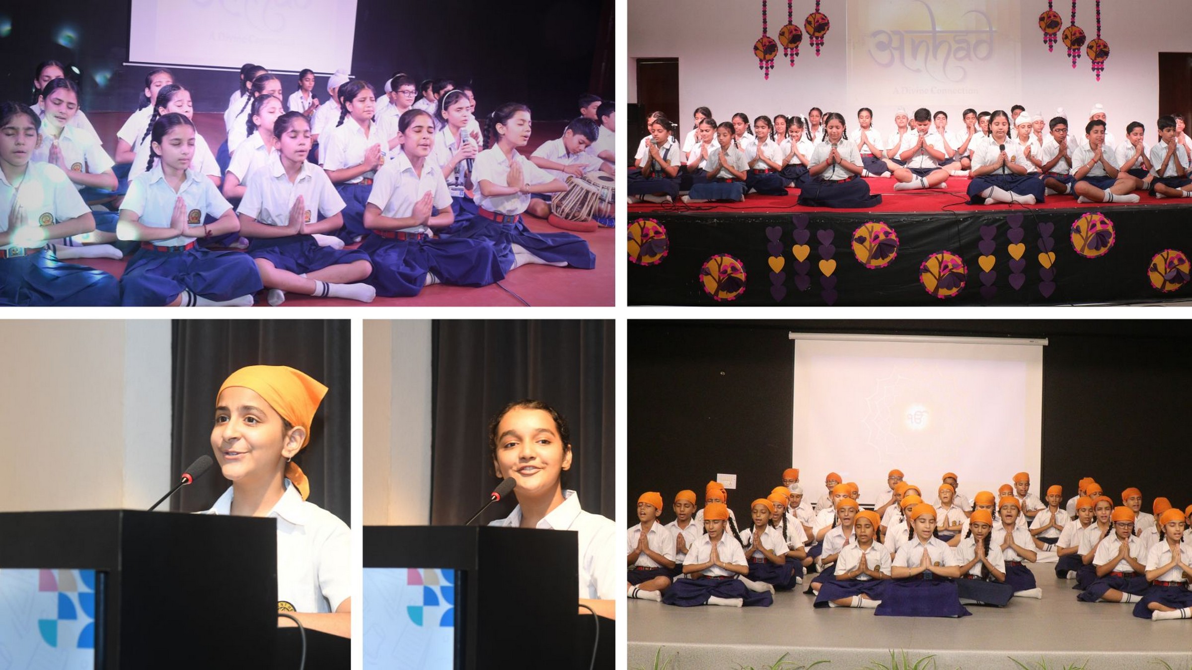 ग्रीन मॉडल टाउन में कक्षा पाँचवीं और नूरपुर रोड कैंपस में कक्षा पाँचवीं एवं छठवीं के विद्यार्थियों ने भावपूर्ण भजन और शब्द गायन के माध्यम से अपनी श्रद्धा और भक्ति का सुंदर प्रदर्शन किया, जिससे श्रोताओं और ईश्वर के बीच एक दिव्य संबंध स्थापित हुआ। कार्यक्रम की शुरुआत स्वागत भाषण से हुई, जिसके बाद मधुर गायन प्रस्तुति दी गई, जिसमें यह संदेश दिया गया कि छात्रों में मजबूत मूल्य विकसित करने हेतु स्कूल और अभिभावकों का सामूहिक योगदान आवश्यक है। हर प्रस्तुति – चाहे वह संगीतात्मक हो या दृश्यात्मक – भक्ति से परिपूर्ण रही और छात्रों के प्रयासों ने दर्शकों को भाव-विभोर और आत्मिक रूप से समृद्ध कर दिया।