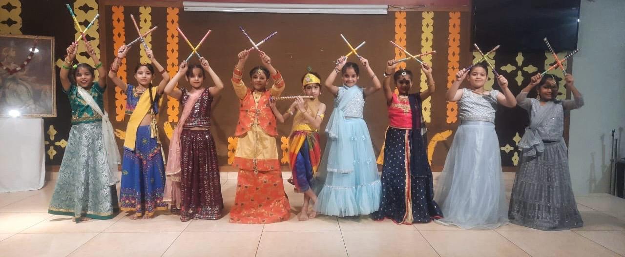 नन्हें विद्यार्थियों ने पारंपरिक पोशाकों में श्रीकृष्ण व श्री राधारानी के बाल स्वरूपों में सजकर मंच को किया जीवंत