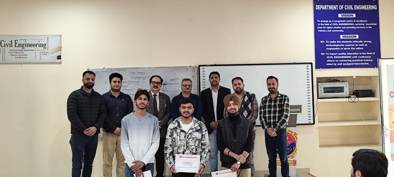 प्रतियोगिता का मूल्यांकन मैकेनिकल विभाग से सुषांत, ऑटोमोबाइल विभाग से साहिल तथा सिविल इंजीनियरिंग विभाग से जसपाल द्वारा किया गया। परिणामों के अनुसार अगम कुमार ने प्रथम स्थान प्राप्त किया, बलराज सिंह ने द्वितीय स्थान हासिल किया तथा जतिन अटवाल तृतीय स्थान पर रहे। विजेताओं को प्रमाण-पत्र प्रदान कर सम्मानित किया गया। प्रिंसिपल डॉ. जगरूप सिंह ने सभी विजेताओं एवं प्रतिभागियों को बधाई दी और कहा कि ऐसे कार्यक्रम विद्यार्थियों में वैज्ञानिक दृष्टिकोण एवं तकनीकी दक्षता को और अधिक सशक्त बनाते हैं। यह आयोजन राष्ट्रीय विज्ञान दिवस की भावना के अनुरूप नवाचार और तकनीकी शिक्षा को बढ़ावा देने की दिशा में एक सफल प्रयास सिद्ध हुआ।