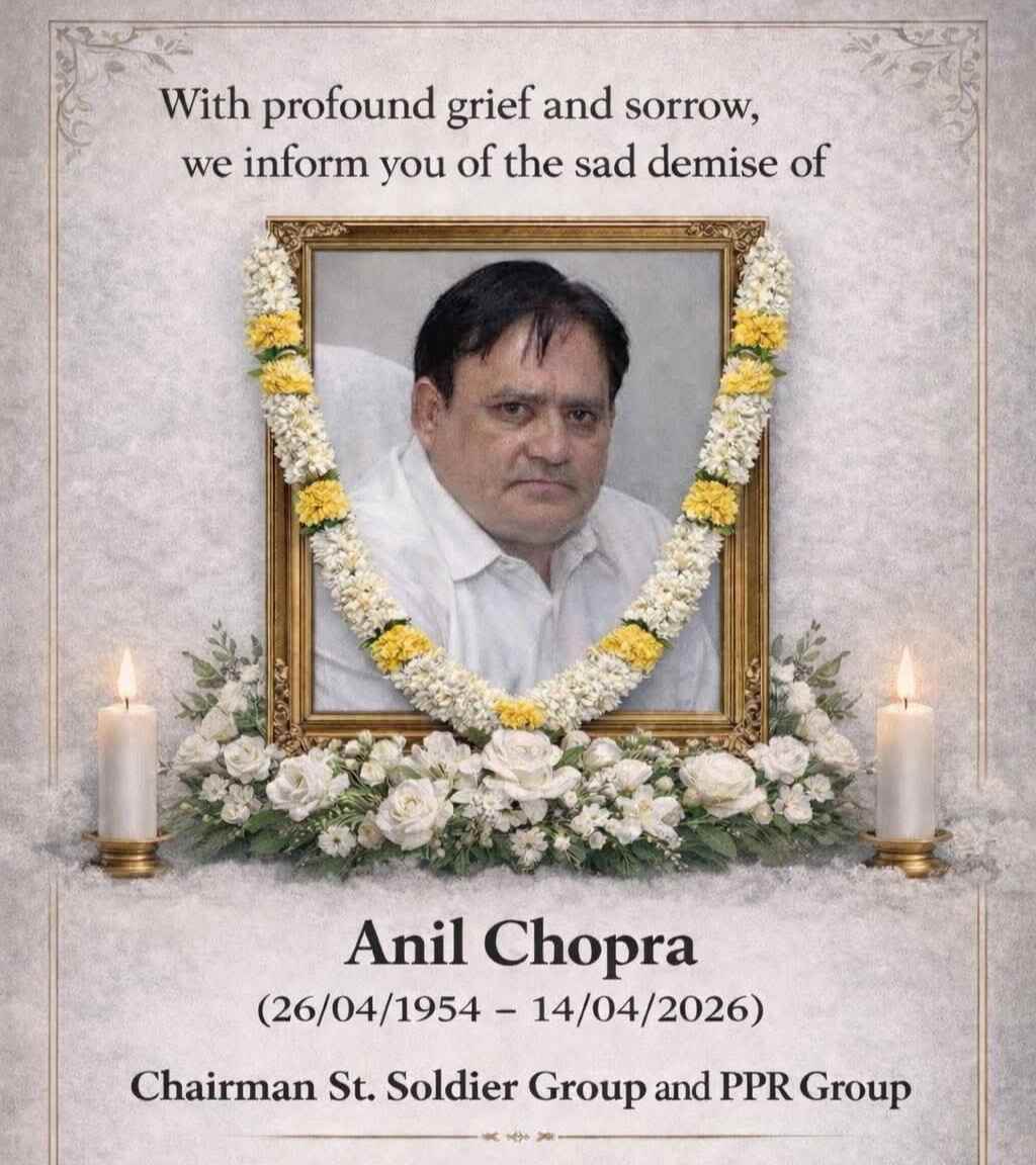 जालंधर। सेंट सोल्जर ग्रुप ऑफ़ इंस्टीच्यूशन्स, पीपीआर ग्रुप के चेयरमैन श्री अनिल चोपड़ा आज सुबह इस फ़ानी संसार को अलविदा कहते हुए पांच तत्व में वीलीन हो गए। उनका अंतिम संस्कार मॉडल टाउन के शमशान घाट में किया गया। अंतिम संस्कार में सैकड़ों की गिनती में सामाजिक, राजनीतिक व धार्मिक लोगों ने शामिल होकर शोक संतप्त चोपड़ा परिवार से संवेदना जताई। सभी गणमान्य लोगों ने कहा कि अनिल चोपड़ा का निधन समाज के लिए भारी क्षति है और यह ऐसी क्षति है जिसे कभी पूरा नहीं किया जा सकता। टाकिंग पंजाब न्यूज नेटवर्क भी श्री अनिल चोपड़ा को भावभीनी श्रद्दांजलि भेंट करता है व परमात्मा से प्राथना करता है वह समस्त परिवार को यह दुख सहन करने की शक्ति दें।